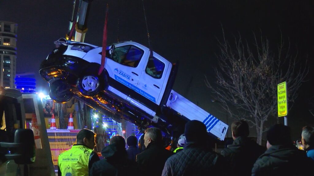 İBB’ye ait zabıta aracı denize düştü